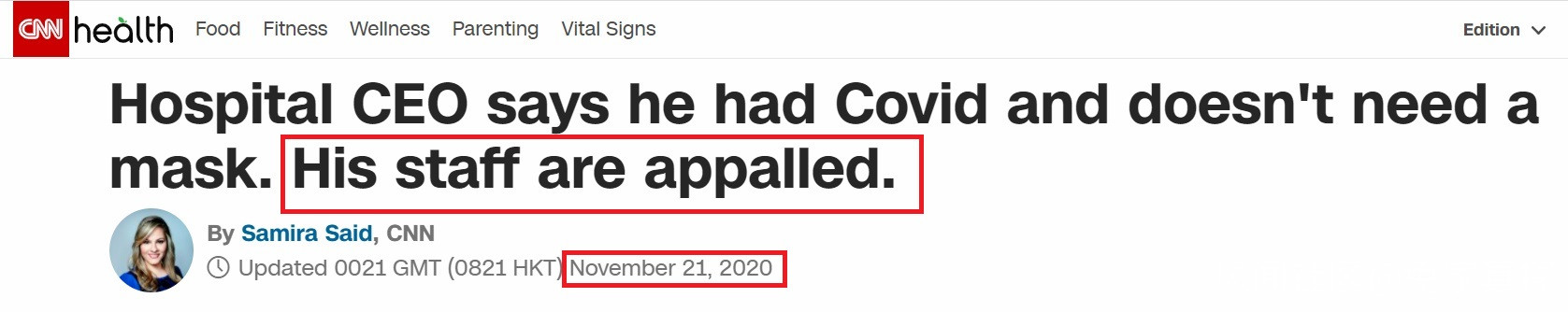 (CNN)總部位於南達科他州的Sanford Health是美國最大的衞生系統之一,其首席執行官兼總裁表示,他不會戴口罩,因為他已經感染Covid-19。