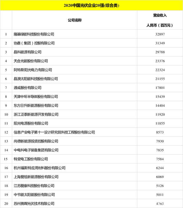 2019年、2020年全球光伏企業20強排行榜_風聞