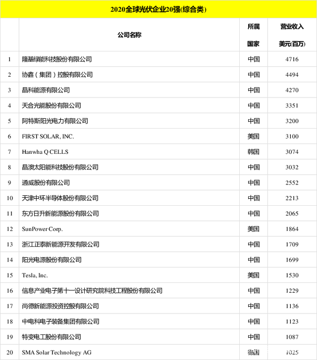 查了一下資料,作者所説的全球太陽能公司排名,大概就是下面這個“2019全球光伏企業20強排行榜”: