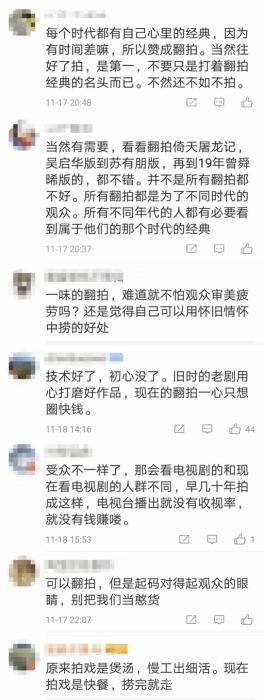 成功的翻拍,是用當下的話語解讀經典的新內涵,讓經典煥發出新的生命力。失敗的翻拍,則是打着情懷的幌子消費經典。大數據和經驗可以製造出迎合觀眾偏好的商品,但卻創作不出直抵人心、跨越時空的作品。不以創作為價值導向的翻拍劇,也該停一停了。