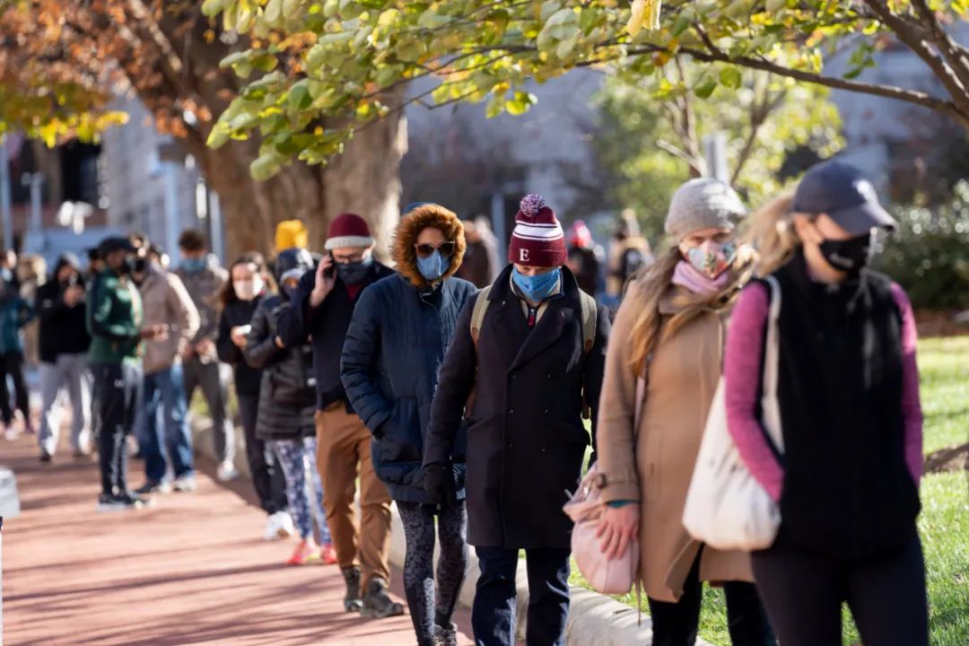 11月23日,人們在美國華盛頓的一處新冠病毒檢測點排隊等候檢測。隨着11月26日感恩節假期的臨近,美國新冠疫情防疫壓力驟增