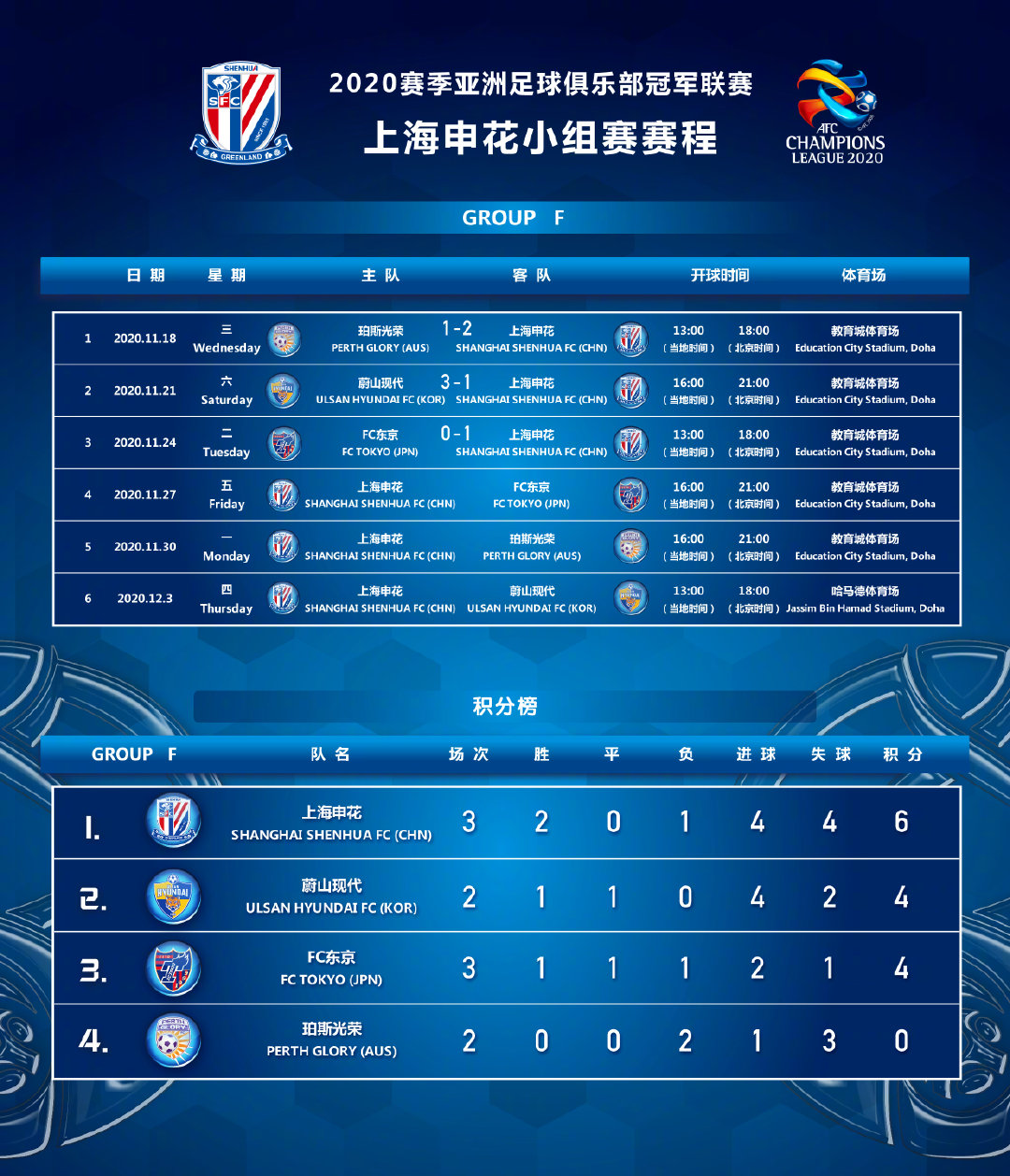 擊敗日本球隊後,申花已經拿到了6分,領先4分的東京FC,球隊已經看到了出線機會——只要3天內再次面對東京FC取得一場平局,就可以繼續保持2分的優勢外加勝負關係的領先,這對於最終出線會起到很大的作用。