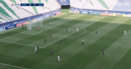 對陣珀斯,于漢超突破後近距離射門,對方門將撲球失誤,皮球緩緩滾進球門。