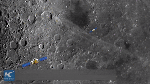 所以嫦娥五號採用了類似阿波羅載人登月用的方式來轉移樣品:交會對接。着陸器工作期間,環繞器在環月軌道待命,等上升器起飛之後兩者再次碰頭。當然,碰頭也不是想要一起飛回去,只是為了轉移樣品而已。