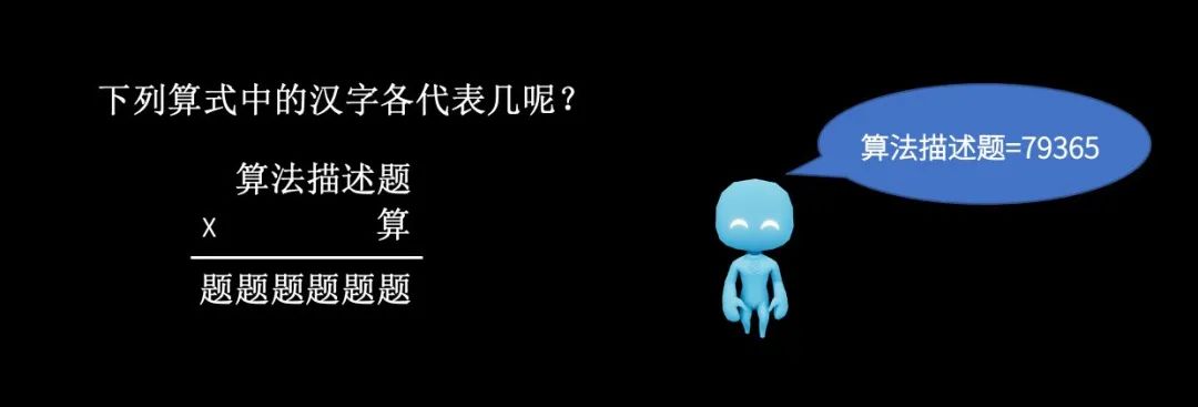 大家好像都在猶豫啊。 有一些小學數學掌握得比較好的同學會説,你這個題很簡單,就是每個漢字對應0到9的數字,那我們把每個漢字跟每個0到9的數字都去試一試,判斷一下哪個對,然後就是答案了。