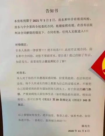 但到了11月,租金一分錢沒退,管家也不見了蹤影,房東卻上門換鎖趕人了。
