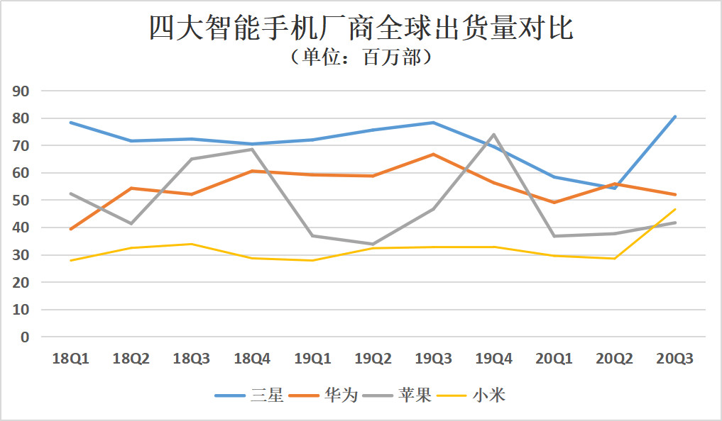 2020年,正是由於在產品力、組織力、全球化等方面的全面提升,再加上一些外部因素的助推,使得小米手機一直跑贏大勢,也跑贏了其他幾大手機巨頭。
