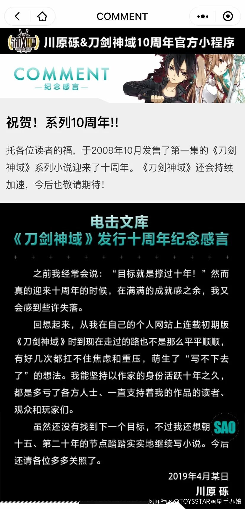 當然這次也是天聞角川十週年特別企劃之一,作為旗下最強IP所以再次鞏固了《刀劍神域》的地位!而且沿用了日本週年紀念插畫作為網站首頁宣傳圖。