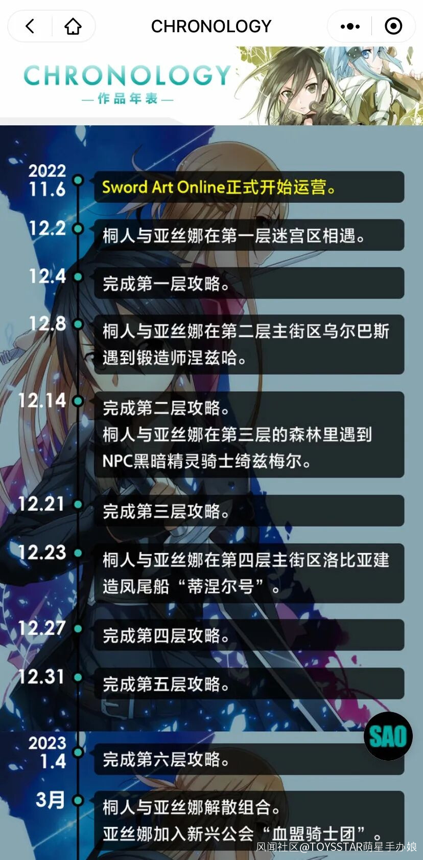 《刀劍神域》時間線及引進作品一覽,不知不覺原作中故事的開展的2022年馬上就要來臨了~雖然現在VR遊戲尚未正式普及,不知道到時會不會有真的《刀劍神域》上線,給大家體驗一番呢?估計粉絲都十分期待着呢!
