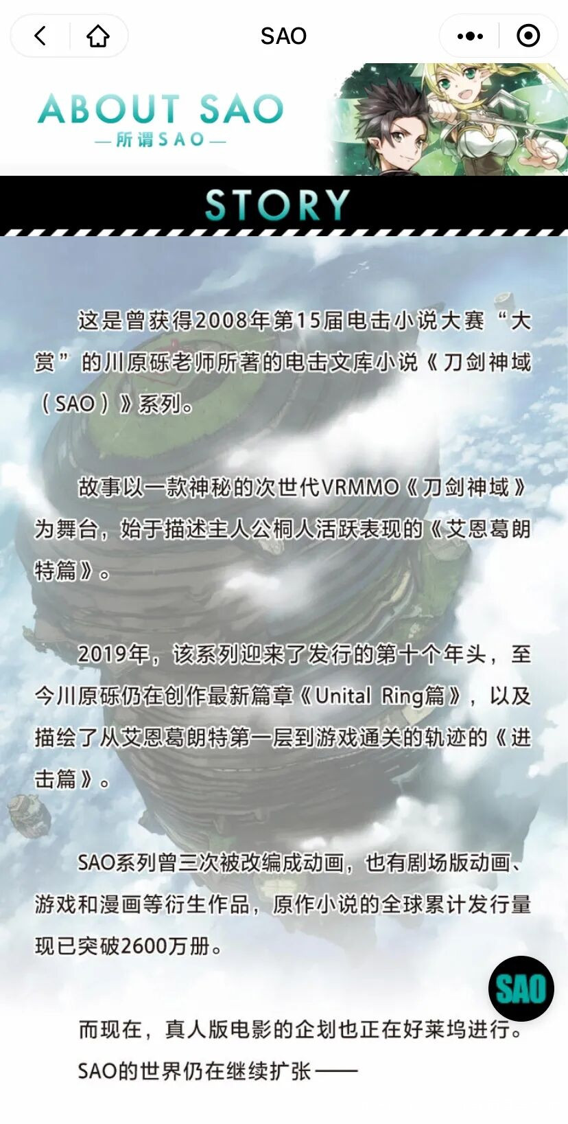 《刀劍神域》10週年,國內官方網站上線,真人版要來了?_風聞