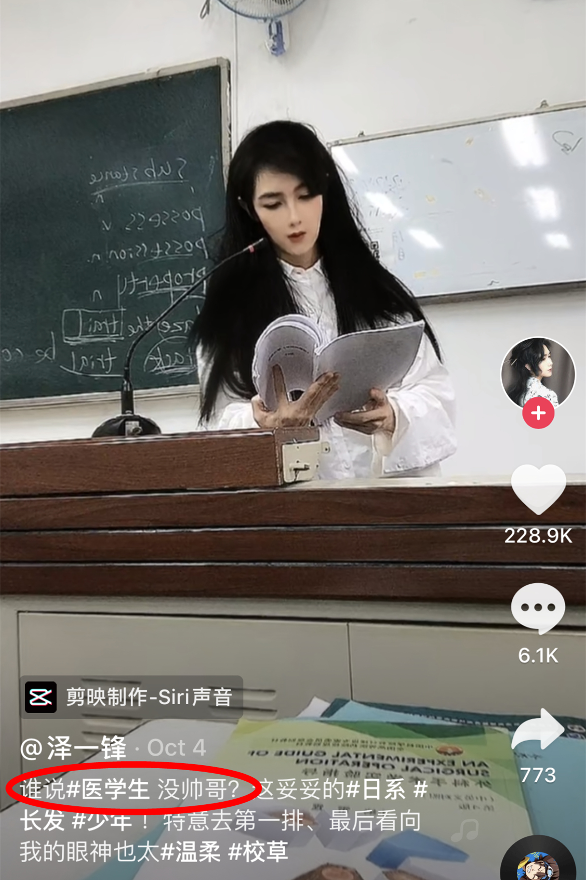 作為抖音粉絲數超過104萬的網紅,@澤一鋒 曾多次發佈含“醫學生”話題的短片,每條視頻的點贊數在20萬上下。