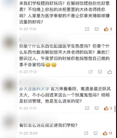 網紅進解剖室擺拍引爭議,大連醫科大學:是校外人員,正在起草律師函_風聞