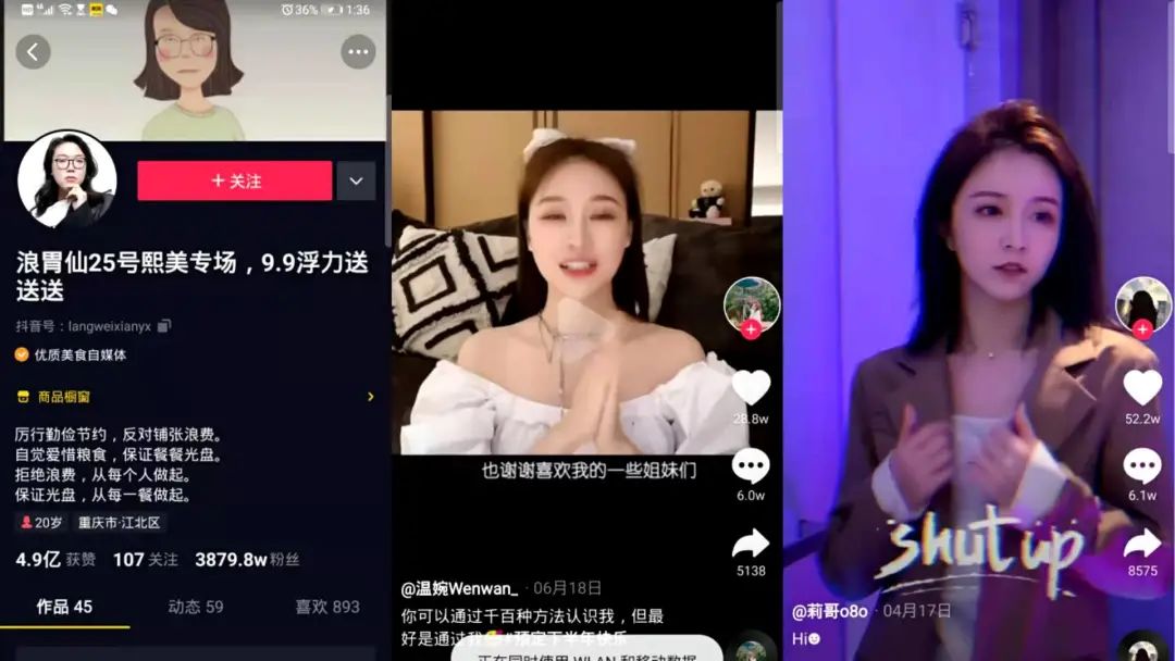 曾經被封殺的抖音一姐“莉哥030”和“車庫搖”温婉,均在今年疫情期間重新營業,而因為吃播被禁受影響的“浪胃仙”粉絲曾多達3800萬,雖然賬號保住了,但刪除了之前所有吃巨量食物的視頻內容,改成美食推薦博主了,從“大胃”切換成了“好味”。