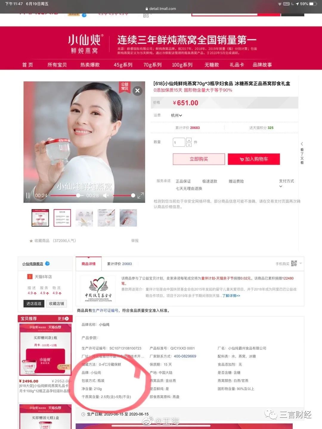 繼辛巴燕窩後,網紅品牌小仙燉也被質疑“智商税”、虛假宣傳_風聞