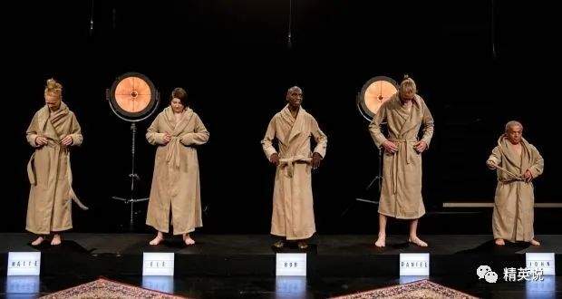 節目中,5個身高、性別、年齡和身材各不相同的成年人身着浴袍,站在舞台中央。