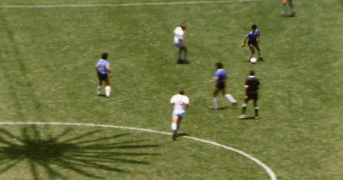 68米的距離,阿斯泰克足球場坑坑窪窪的草皮,5個強壯的英格蘭人,這一切都無法阻擋馬拉多納進球。