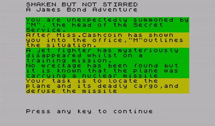 《Shaken But Not Stirred》:第一款詹姆斯·邦德題材電子遊戲,1982年發售於ZX Spectrum平台