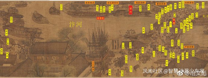 全圖訟師、牙人、相師、工匠、佃農等824個人物,作者一一刻畫逐一復活,每個人都有名有姓,佯裝、埋伏在舟船車轎、酒肆樓閣中。看似太平盛世,其實殺機四伏。在小販的叫賣聲中,金、遼、西夏、高麗等國的間諜、刺客已經潛伏入畫。