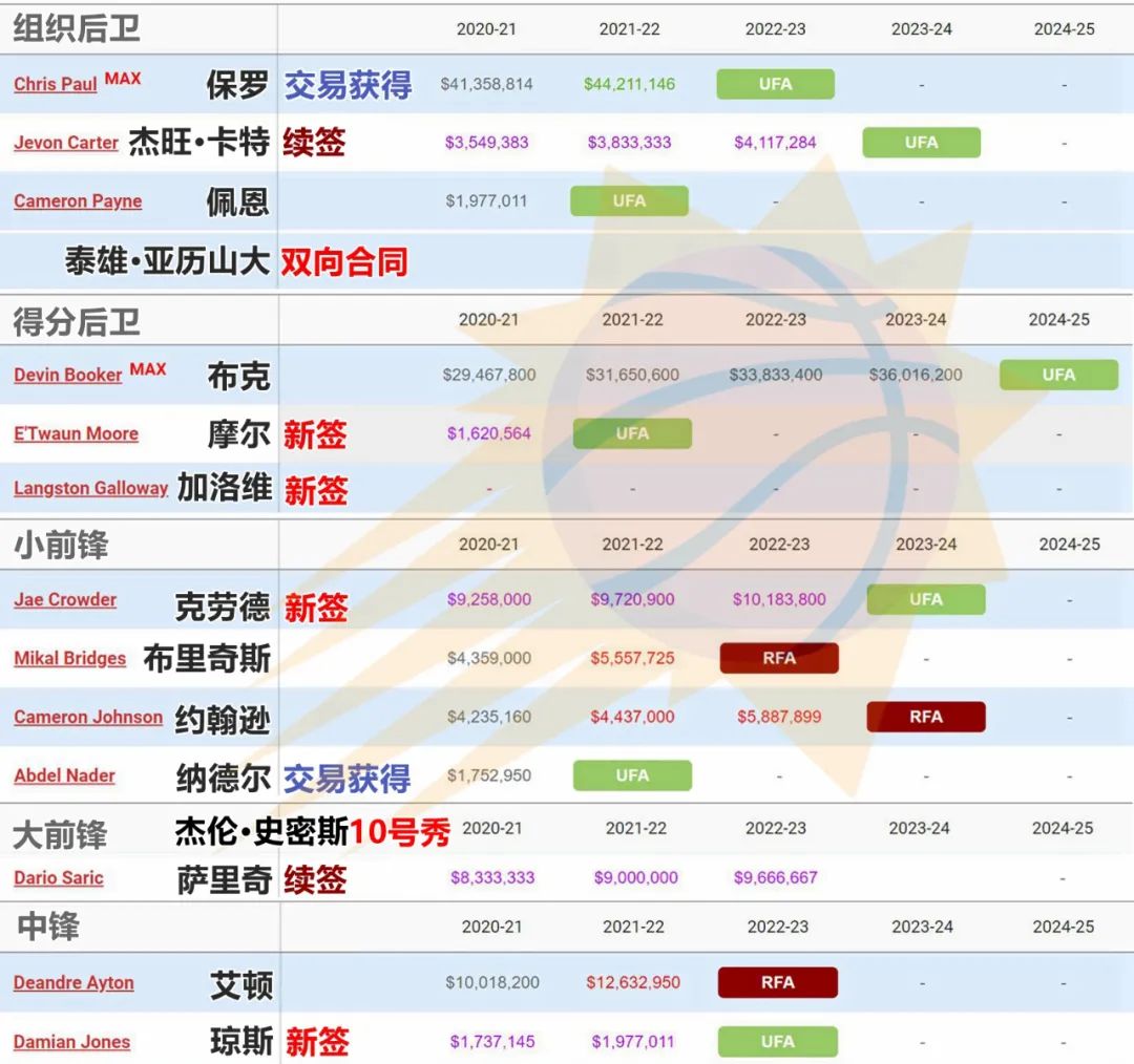 先是有了保羅,然後簽下克勞德,又在外線增加了伊唐·摩爾、加洛維等有經驗的後衞,續簽了薩里奇,這一系列操作把太陽隊變成了新老結合的隊伍。保羅的加入,標誌着太陽結束卧薪嚐膽的準備期,準備衝刺。