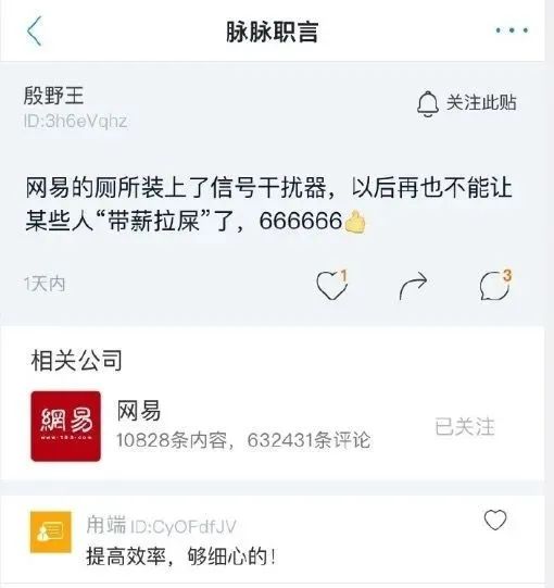 緊隨其後的是養殖、遊戲、購物多棲發展的網易,可能是從高科技養豬得到的靈感吧,網易的廁所裝上了信號干擾器,方便我們專心幹正事;