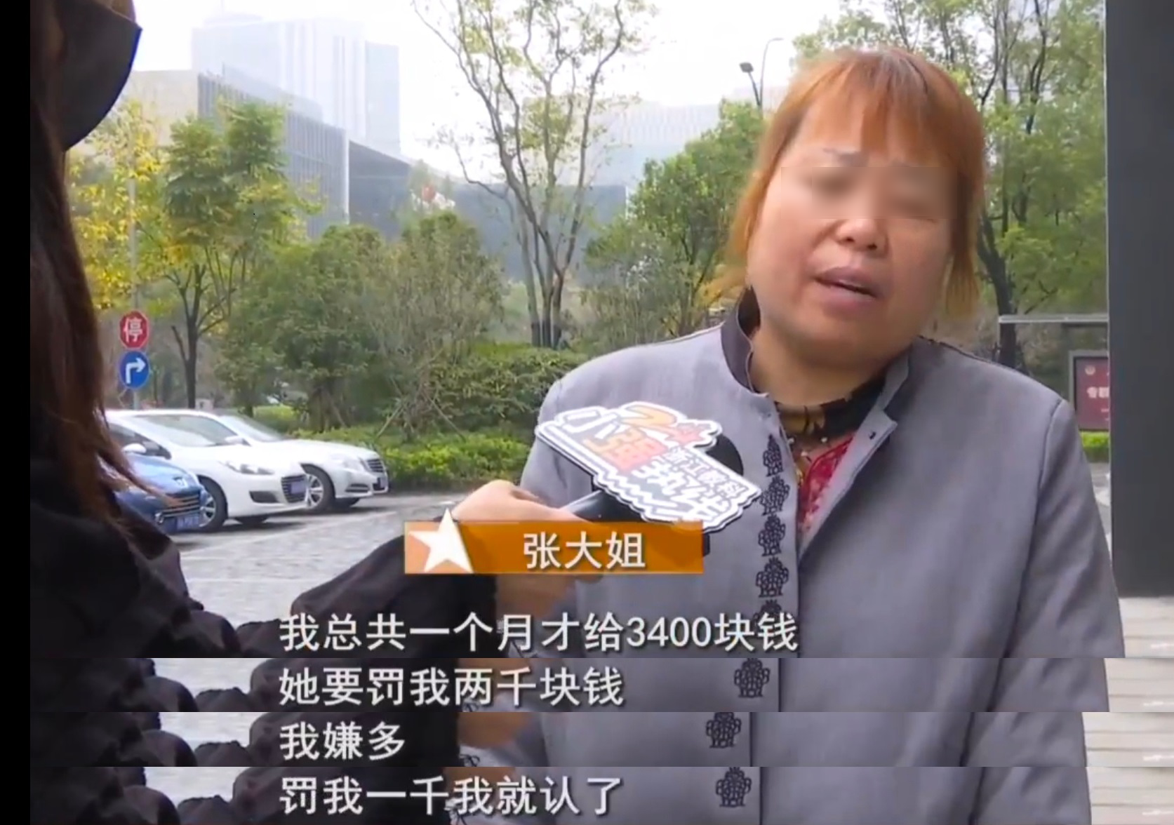 對於2000元的罰金,張女士表示自己月收入才3400元,罰金太高,無法接受。