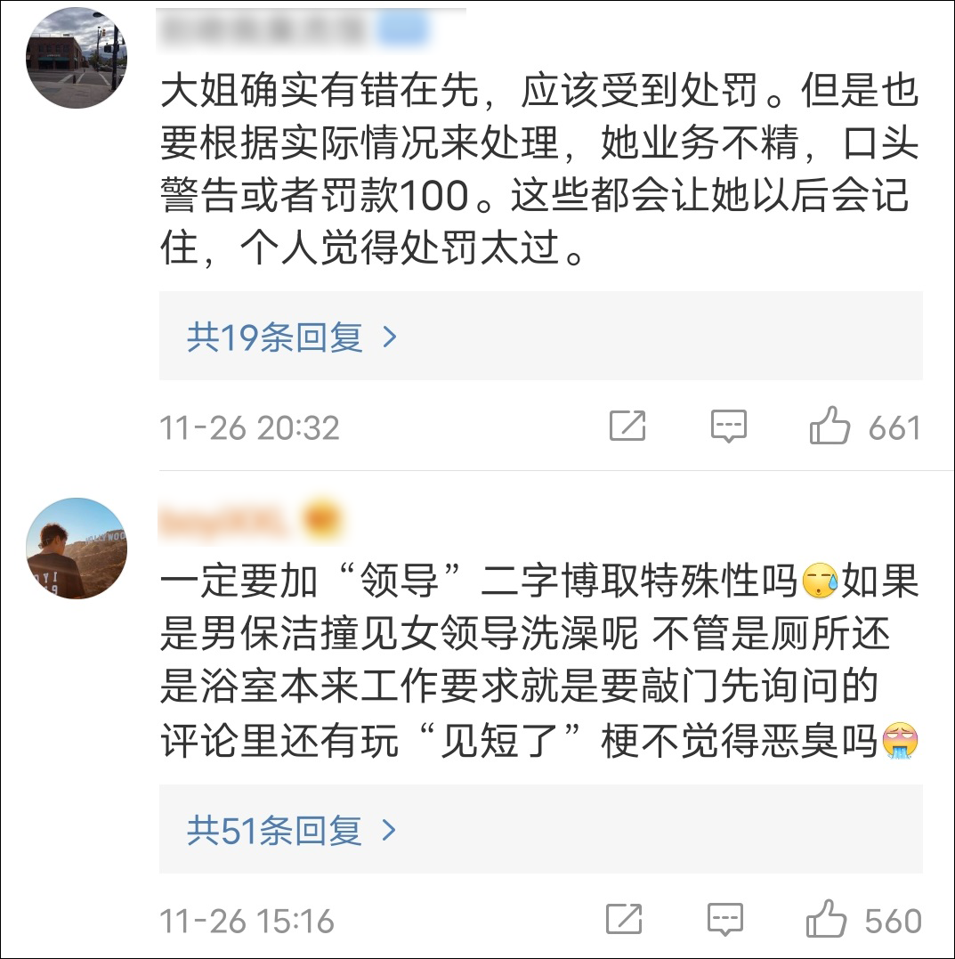 女保潔誤入浴室撞見男領導洗澡,被罰2000合理嗎?_風聞