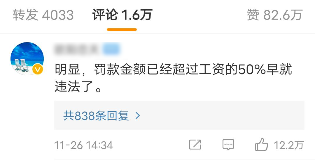 但同時也有網友強調:2000元的罰款超過了月工資的50%,違法了。