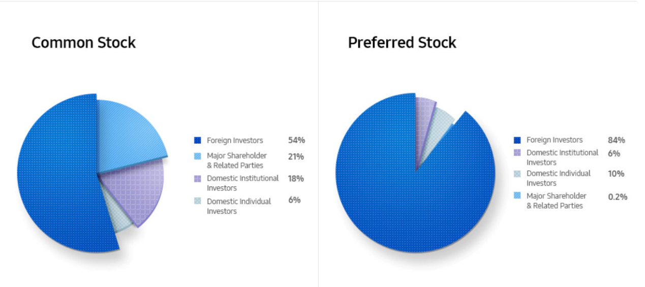 而三星集團最大的利潤池、佔韓國股市市值20%多的三星電子,據其2020年第二季度股權結構,普通股外國投資者(多數為美國投資者)佔比為54%,優先股佔比更是高達84%。