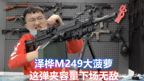 相比之下,看看這個M249水彈玩具在中國正常體格的男性拿在手裏的感覺……所以雖然理論上牛,但實際上大家一般不用這個下場,很累的