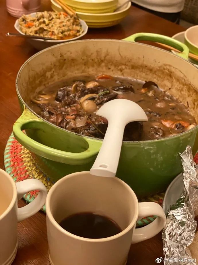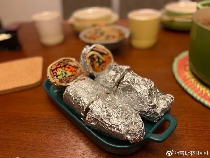 我們昨天也和朋友在家裏聚會吃了飯,自己做了燉牛肉、牛肉卷: