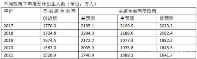 國家衞計委副主任王培安主持預測放開二孩後的出生人數(見下表):
