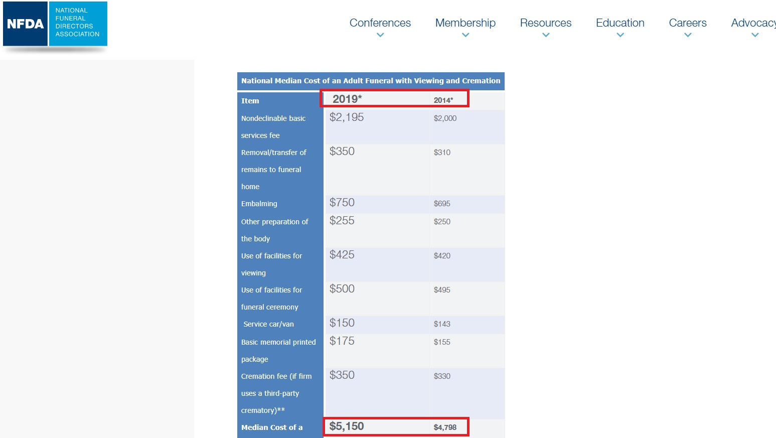 據紐約州喪葬董事協會稱,該市的喪葬援助從5月份的900美元增加到了1,700美元,仍然大大低於傳統喪葬服務的平均費用9,000美元左右。據《華爾街日報》報道,典型的火化服務費用約為6,500美元。