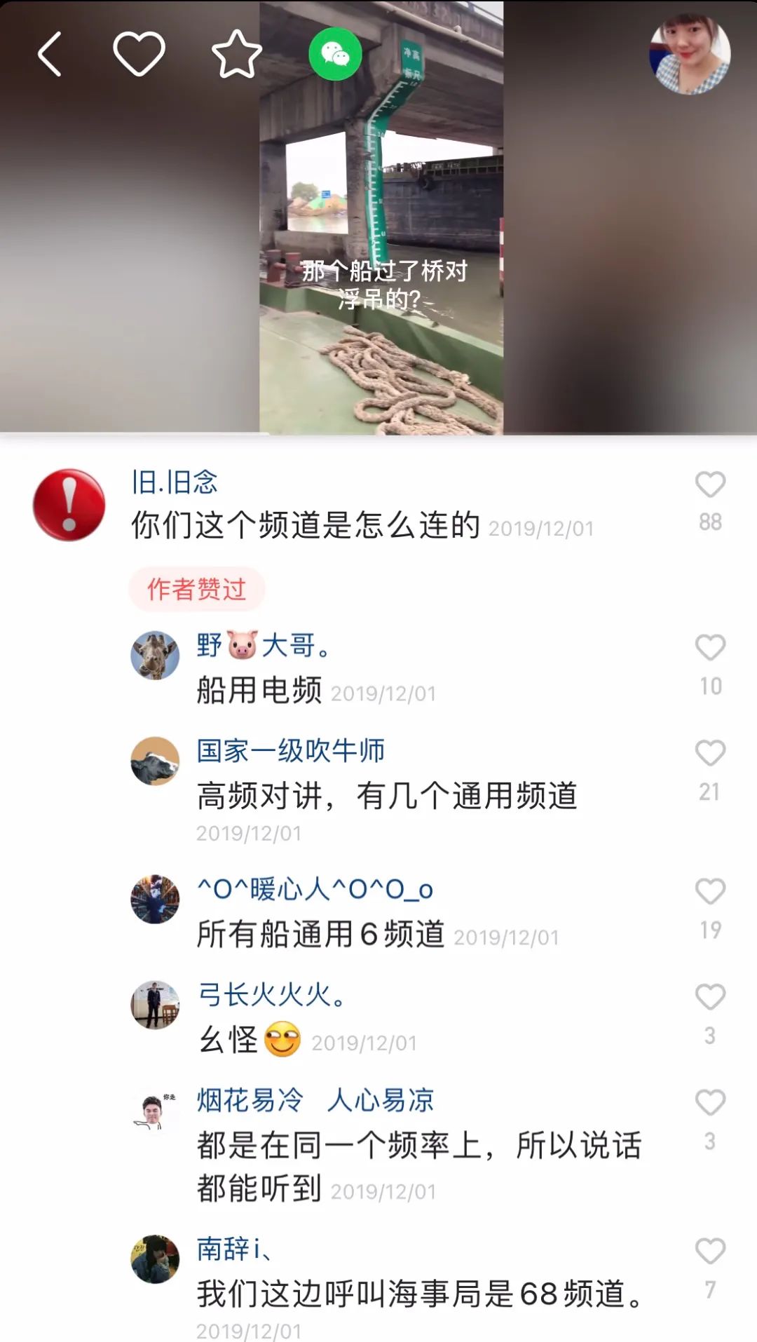 大橙子視頻裏評論區裏,也常常有不同地方的跑船人留言、記錄,共享與天氣、風向、河道有關的信息,講述自己在航行途中的喜怒哀樂,他們遇見暴雨天遇見激流漩渦,然後解決,或者等待解決。