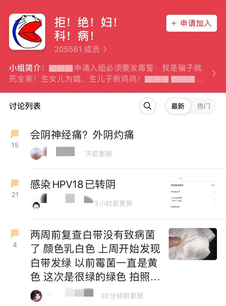 豆瓣上有一個小組,叫“拒絕婦科病”,小組有超過20w成員。