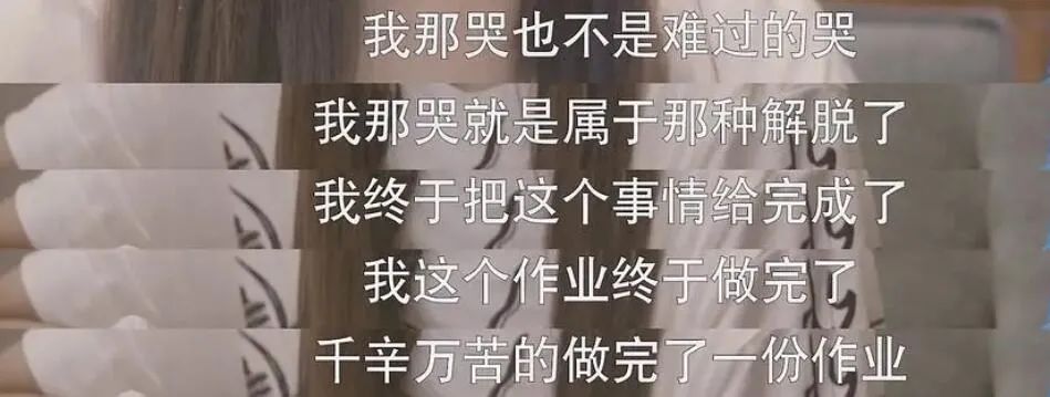 但是楊超越卻説自己沒有難過,唯一的感受就是解脱了,終於做完作業了。
