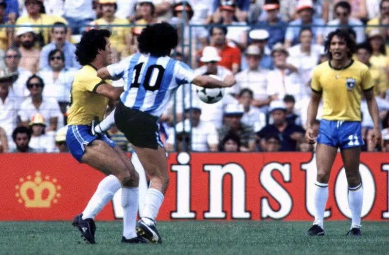 在對陣巴西時,球隊0:3落後,比賽也接近尾聲,巴西球員犯規裁判未吹,氣急的馬拉多納直接踹向巴西人小腹,被裁判直接紅牌罰下,馬拉多納的第一次世界盃之旅,就這樣跟着球隊以一種不太光彩的方式結束了。