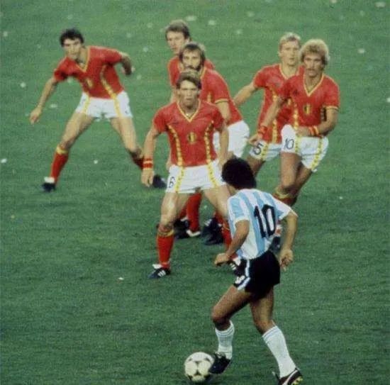 揭幕戰阿根廷爆冷0:1負於比利時,馬拉多納在對手嚴防死守之下毫無建樹。