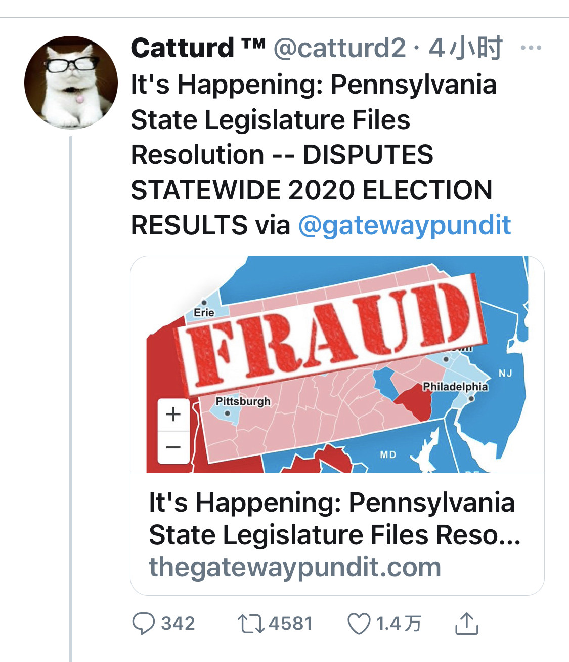 4. 宣佈賓州總統大選和州級選舉結果存在爭議;