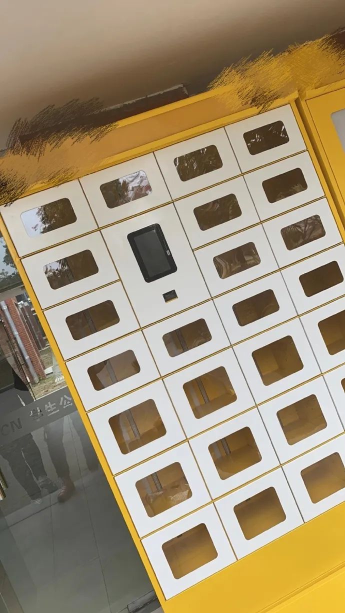 最近,@南京傳媒學院 宿管站新增的一排外賣櫃,鮮明的亮黃色十分矚目。