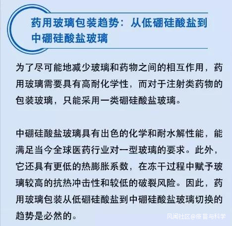 目前,中硼硅玻璃是國際公認的安全藥品包裝材料,不僅可充分保障藥品的安全穩定,還可防止藥品與低等級包裝發生不良反應而危害人體健康。