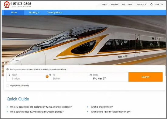 近日,鐵路官方售票網站12306推出英文版,不懂中文的外國乘客可以自己註冊賬號,購買火車票了。