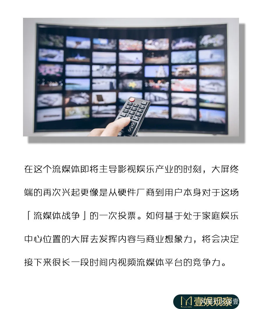 這種轉變,也為進入下一個十年的流媒體們帶來了新的機遇與挑戰,誰能搶先佔據大屏,誰就將在未來的流媒體競爭中取得先機。