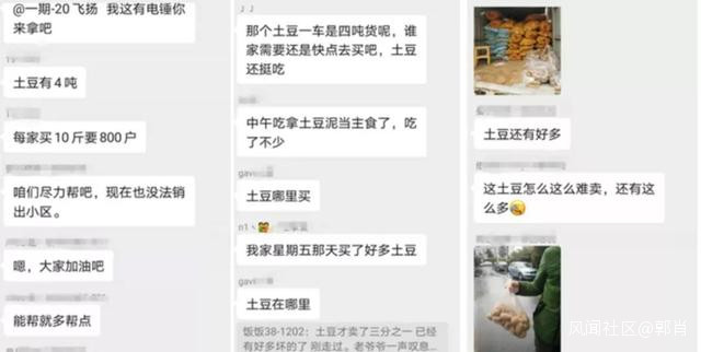 很快,路過的業主發現了這個情況,大家決定成立“消滅土豆小分隊”,通過微信羣、公眾號等渠道幫忙銷售土豆,“咱們盡力幫吧,現在也沒法銷出小區”“能幫就多幫點”。