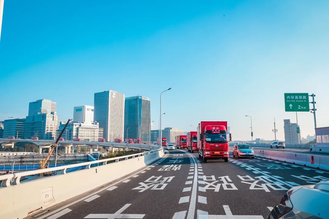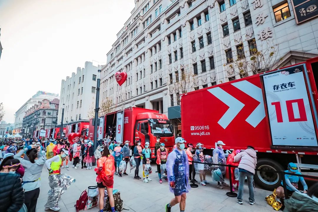 而上海這兩天剛剛下了一個禮拜的悽風苦雨,好不容易雨停,又降温! 雖然天氣冷,但這些運輸車內載着的,都是京東物流滿滿的心意和對參賽跑者的祝福!