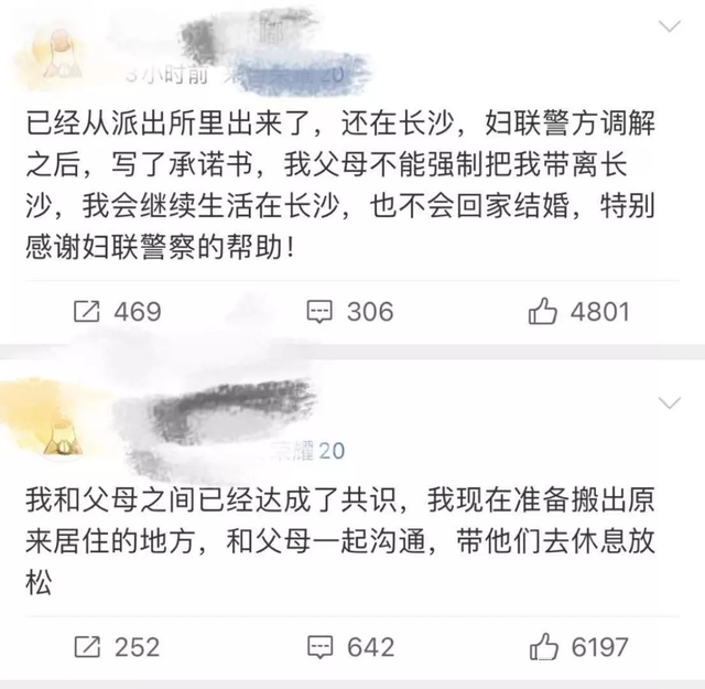 一時間,眾聲喧譁。嶽麓區警方積極協調,湖南省婦聯、長沙市婦聯、嶽麓區婦聯均派工作人員趕到現場。記者也在隨後與發帖人小潔(化名)及其父母進行了溝通和求證。