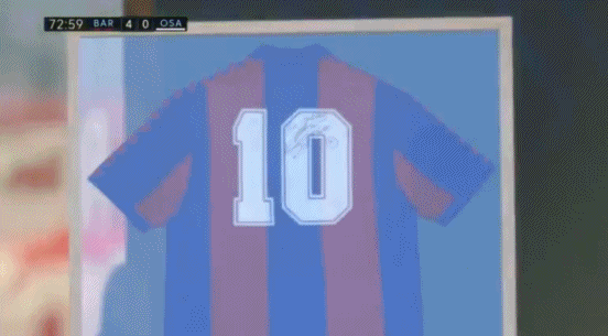 這是馬拉多納去世後,巴塞羅那參與的第一場正式比賽,鏡頭不止一次給到了諾坎普看台上那件馬拉多納巴薩時期的簽名球衣。
