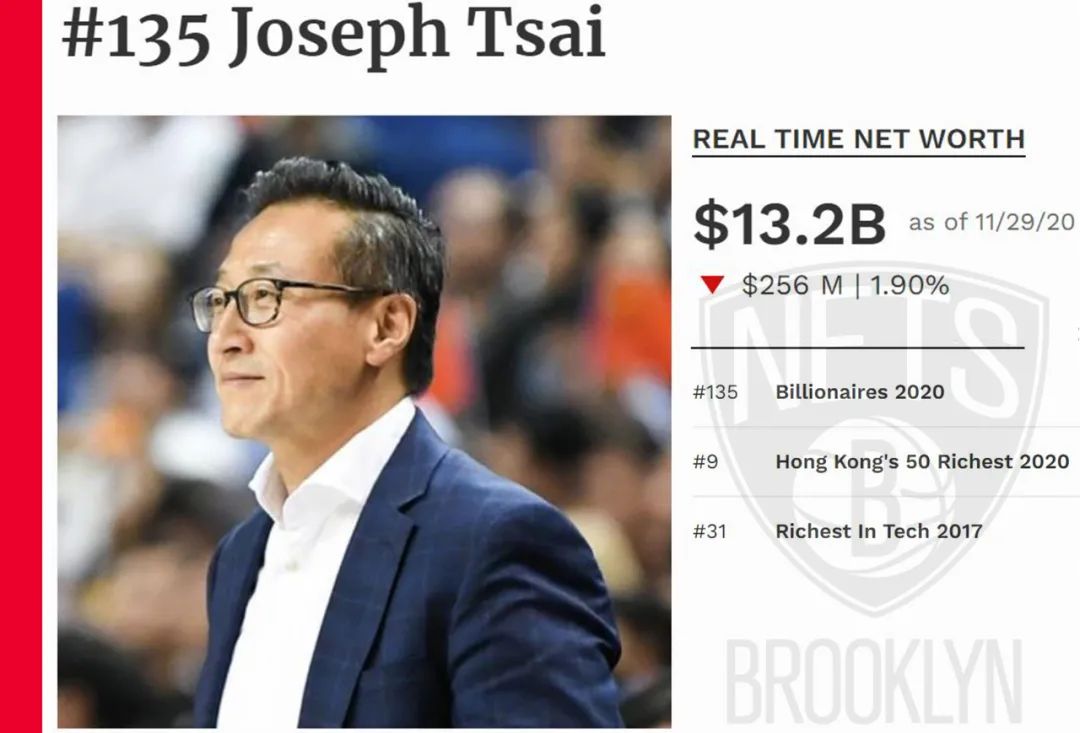 蔡老闆現在是NBA第二有錢的老闆,僅次於快船隊的鮑爾默。別看老蔡眼下的排名是世界第135位,可是比起今年4月份時,身價還漲了30億美元左右,你看美國疫情鬧成這樣,蔡老闆反而更有錢了。