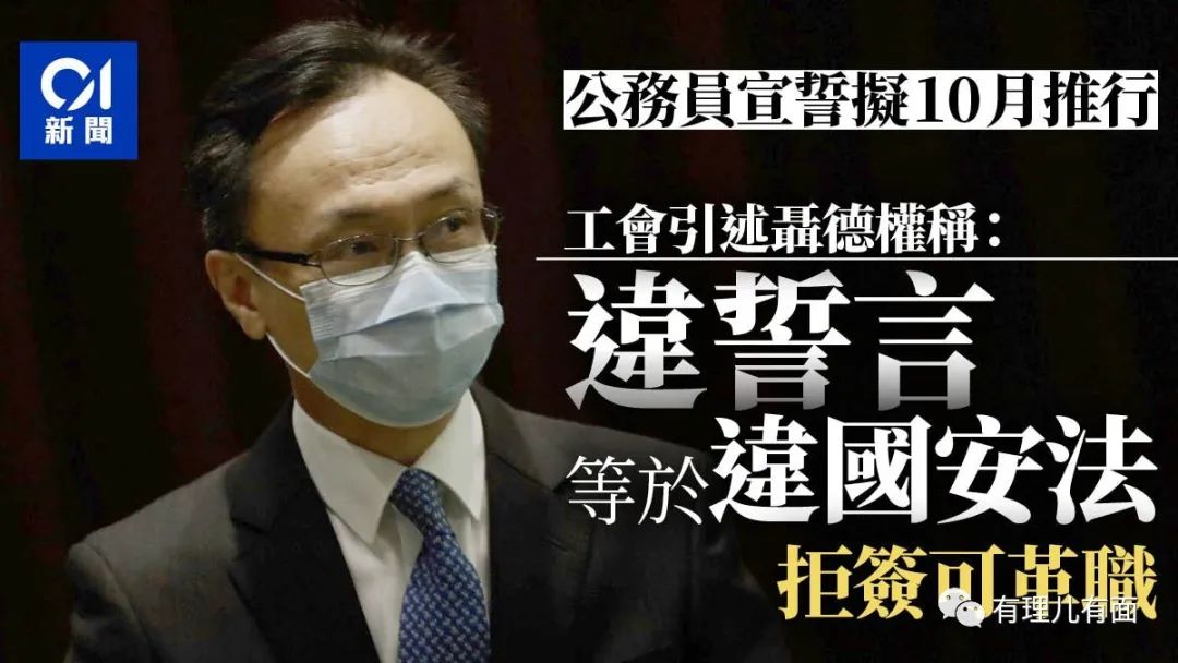 10月份,香港公務員管理局要求新入職公務員必須宣誓或簽署聲明,效忠《基本法》。 《基本法》第一條就是: 香港特別行政區是中華人民共和國不可分離的部分,其實也就是要求公務員忠誠(香港説法叫效忠)於中國。 11月27日,進一步要求全體公務員必須宣誓或簽署。