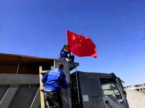 ▲網上流傳的撤離途中車隊插上中國國旗。