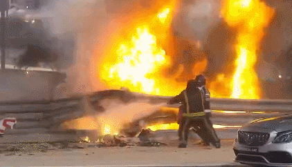 讓人難以置信的是,格羅斯讓在被困數秒後,“以某種方式”離開了賽車殘骸。他穿過火焰,躍過已經熔化的護欄,跳回到路面上,隨即被工作人員救下。